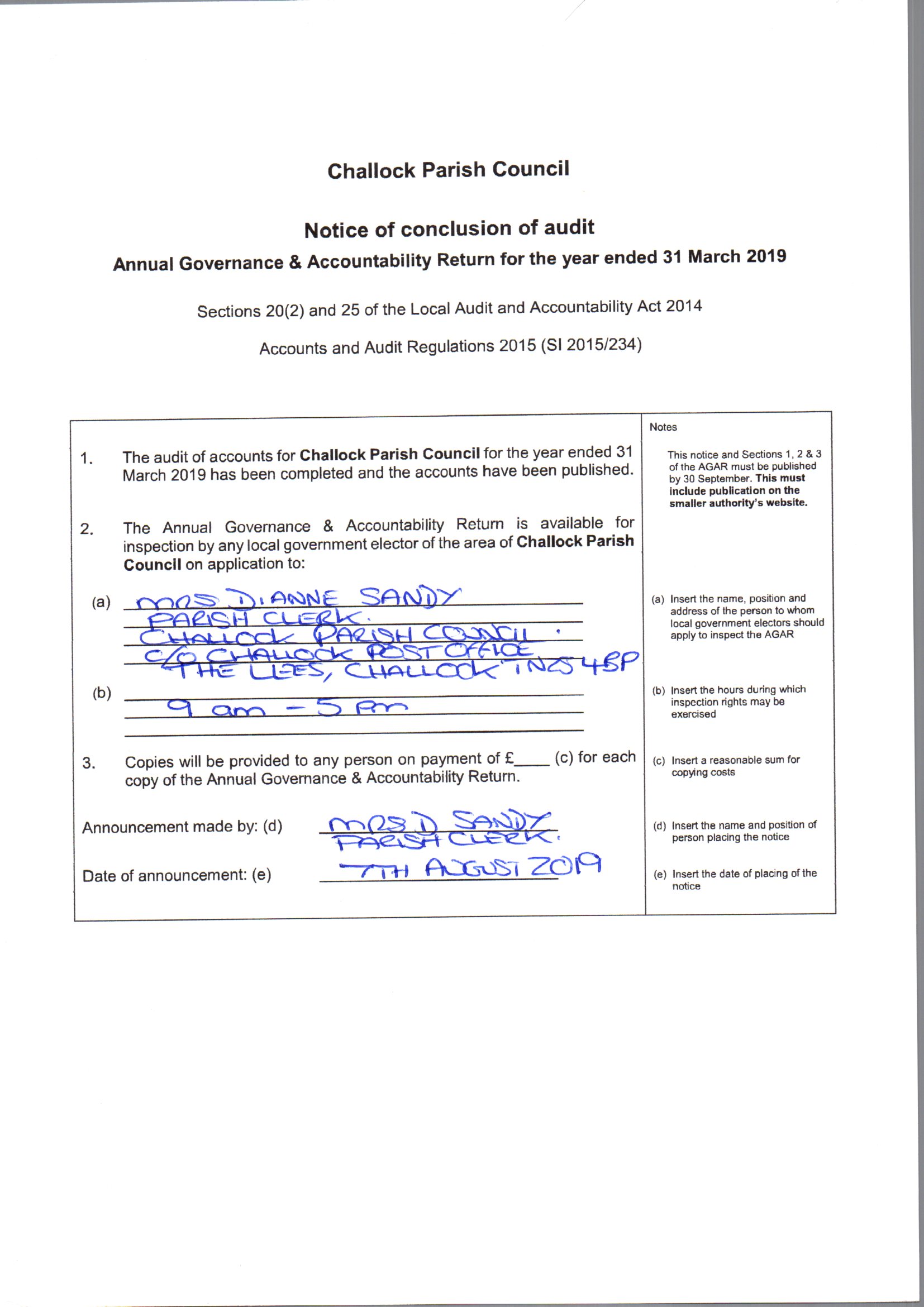 Notice of Conclusion of Audit